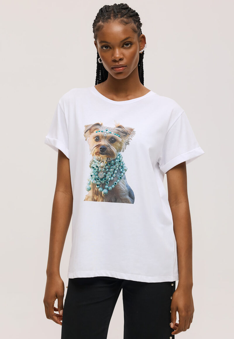 Μπλούζα Unitee με Τύπωμα Σκύλος με Πέρλες