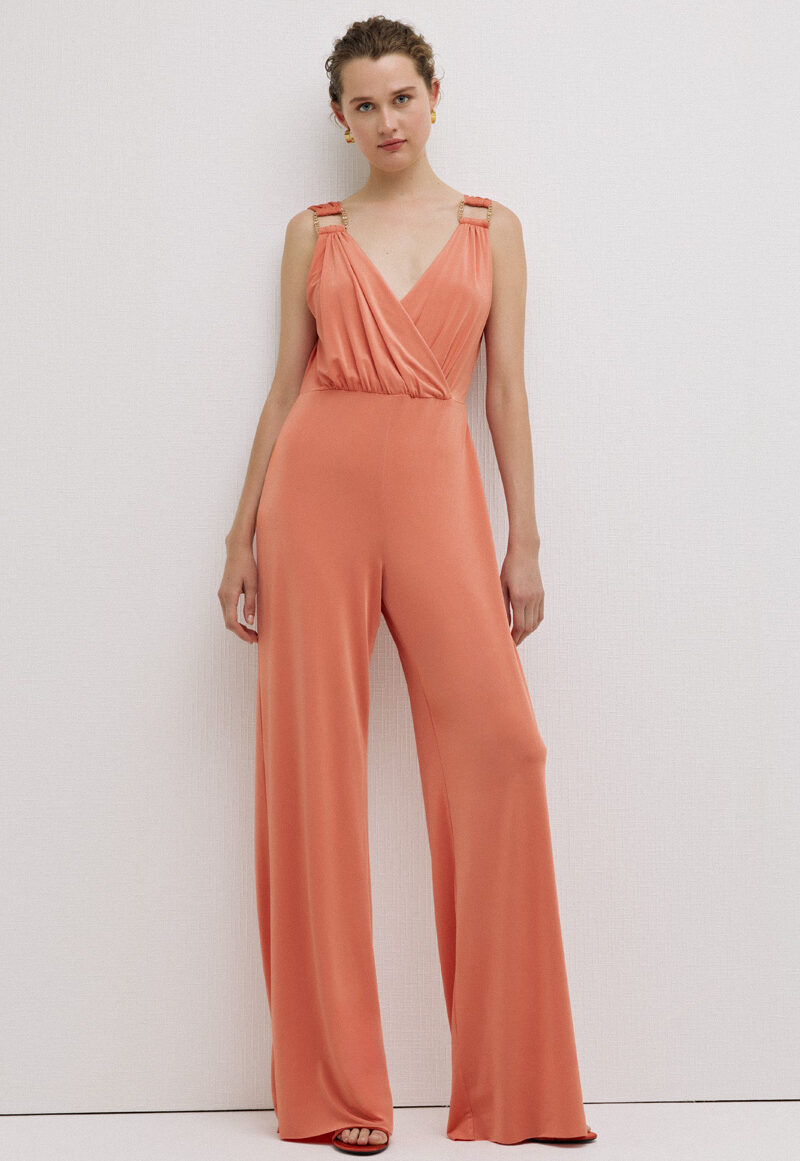 Ολόσωμη Φόρμα με Wrap V-Ντεκολτέ και Φαρδιά Παντελόνα