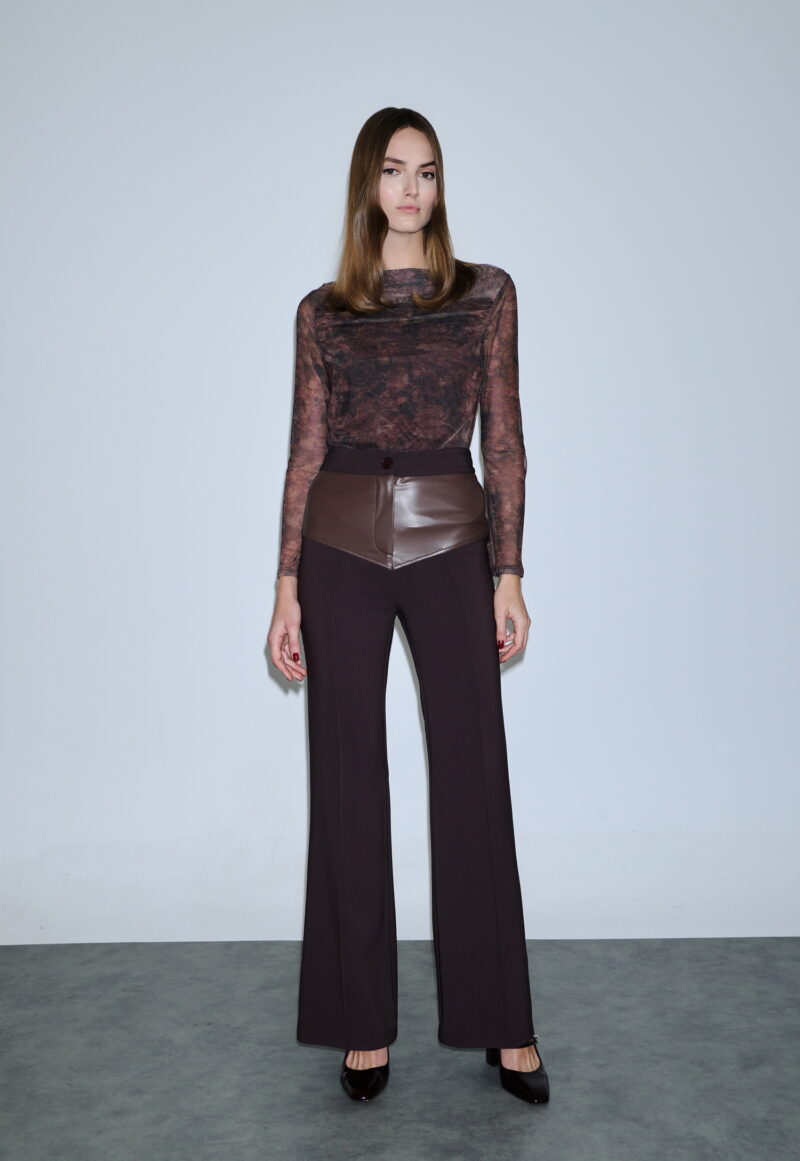 Dejavu Ψηλόμεσο Παντελόνι με Δερματίνι Λεπτομέρειες