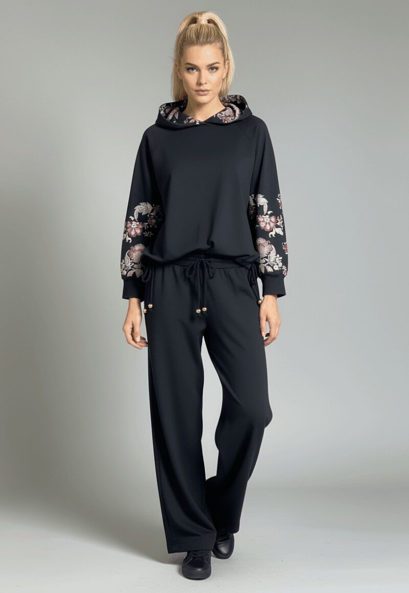 Dejavu Παντελόνα με Μαύρες Φλοράλ Λεπτομέρειες