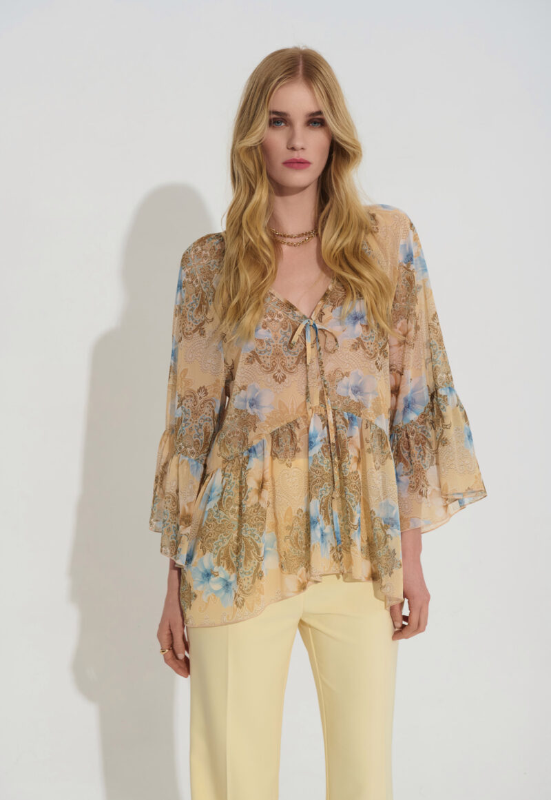 Boho Floral Πουκαμίσα με κίτρινες και γαλάζιες αποχρώσεις.
