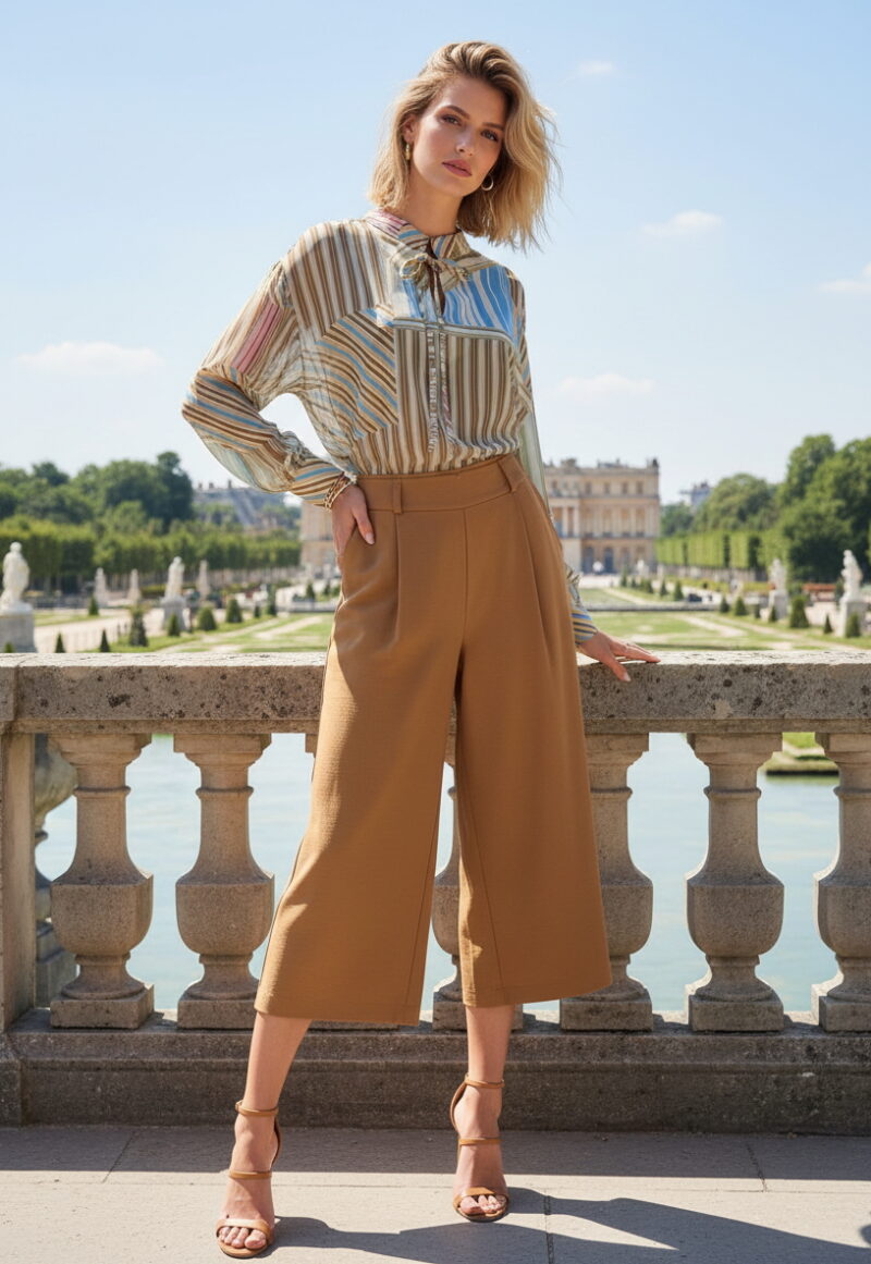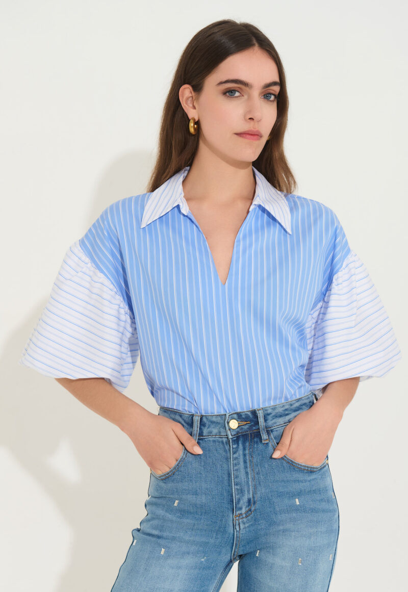 Ριγέ Πουκάμισο με Φουσκωτά Μανίκια