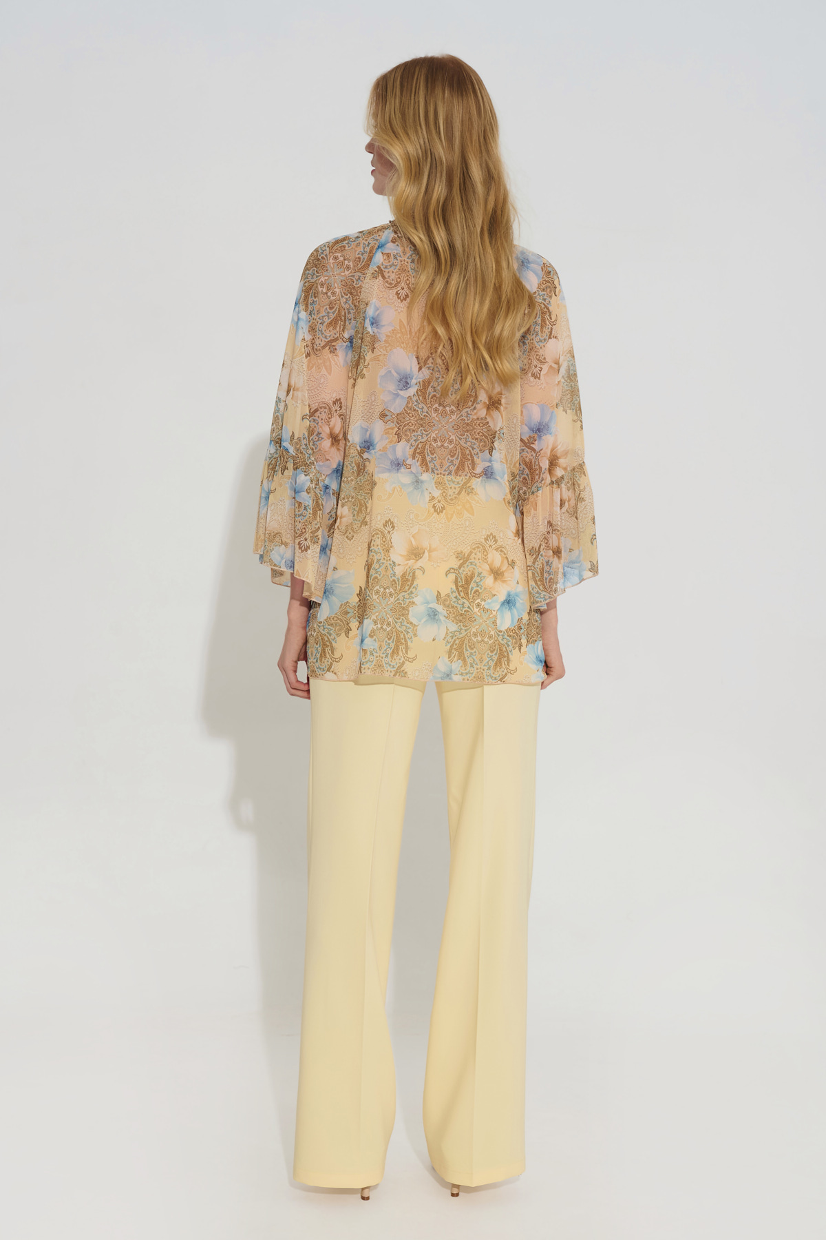 Για μια απόλυτα κομψή εμφάνιση, συνδυάστε την με παστέλ κίτρινο παντελόνι ή τζιν (μπλε ή λευκό) και πλατφόρμες για μια χαλαρή βόλτα ή έναν καφέ στην πόλη.