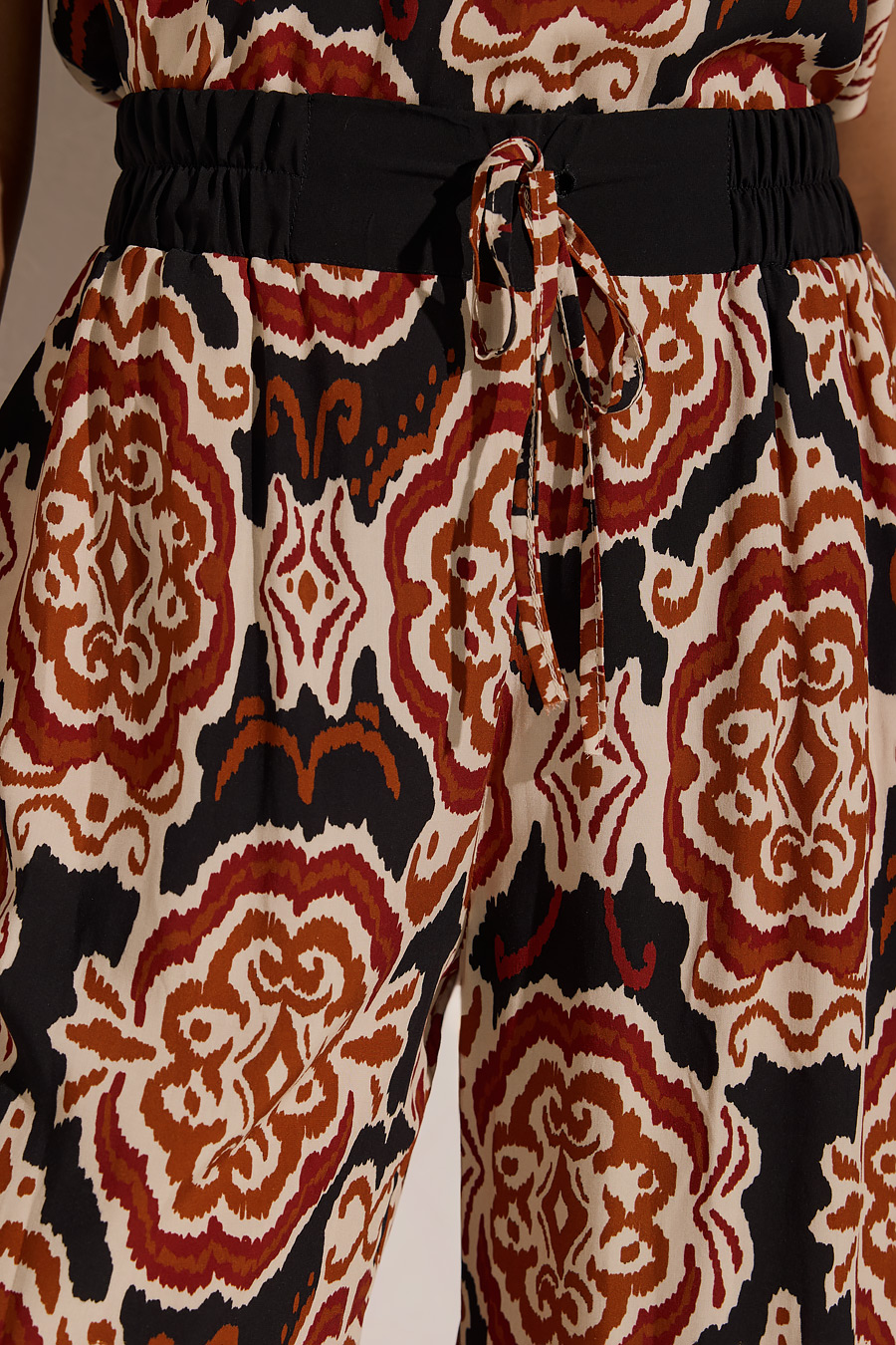 Ψηλόμεσο Crop Παντελόνι με Floral Τύπωμα