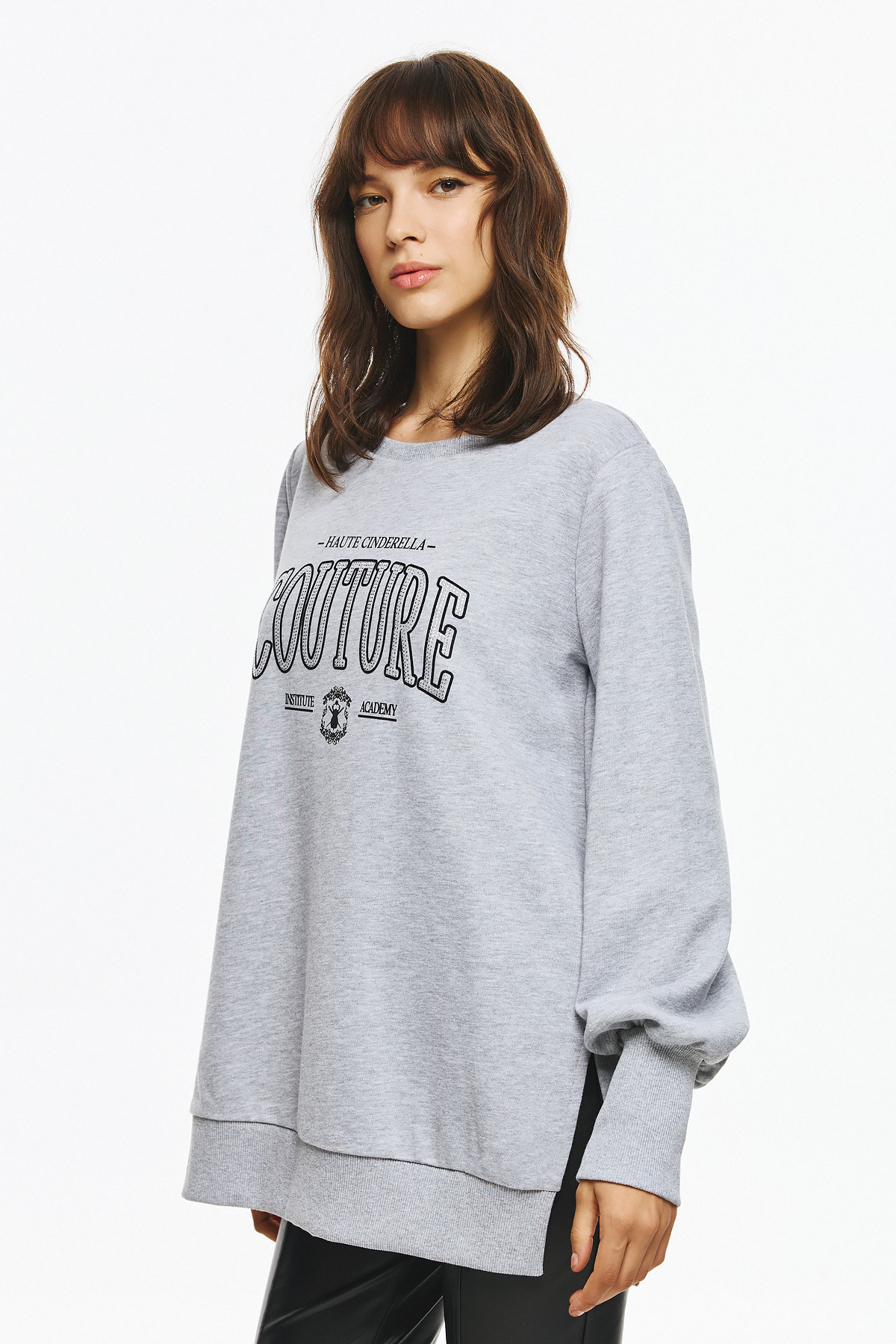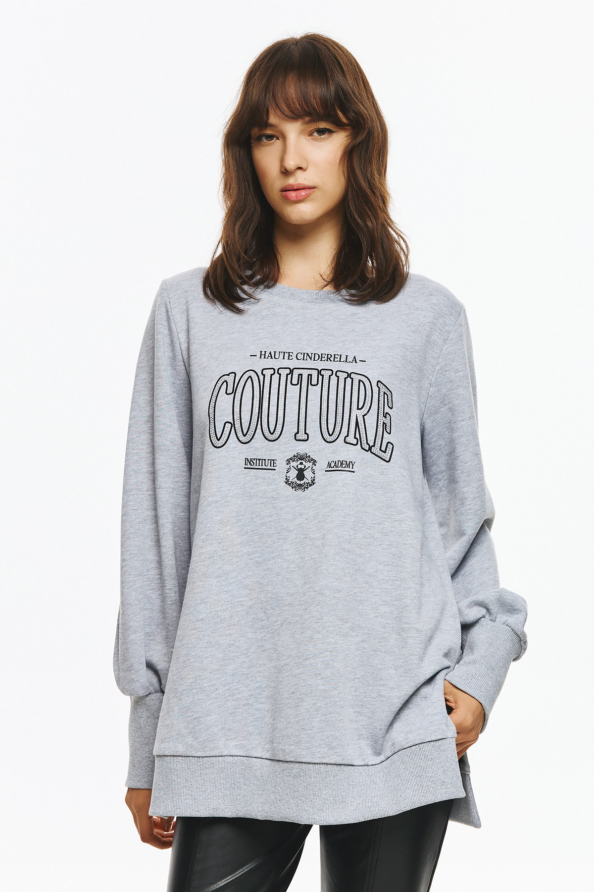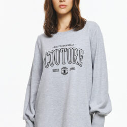 Φούτερ μπλούζα με στάμπα “HAUTE CINDERELLA COUTURE” μπροστά, διακοσμημένη με στρας για elegant και glam αποτέλεσμα. Το φούτερ έχει μακρύ balloon μανίκι με rib τελειώματα και χαλαρή unisex γραμμή, προσφέροντας extra άνεση και στιλ, ενώ το ιδιαίτερο logo δίνει fashion ταυτότητα που ξεχωρίζει σε casual εμφανίσεις.