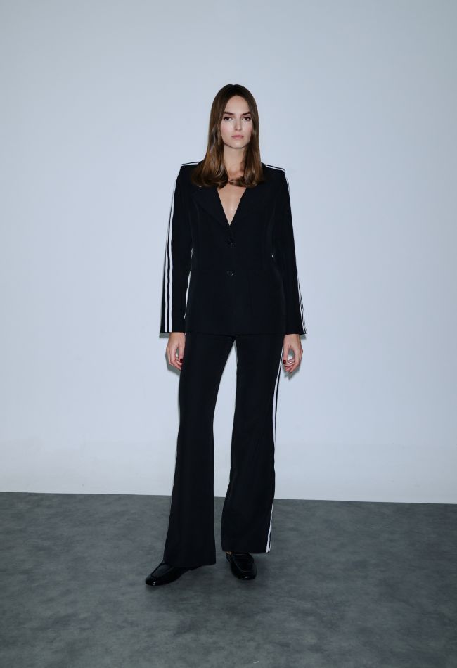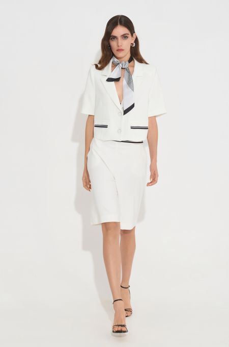 Μοντέρνο κοντό κουμπωτό γυναικείο σακάκι με V λαιμό και ραφές αντίθετου χρώματος, ιδανικό για θηλυκό και edgy office look.