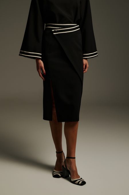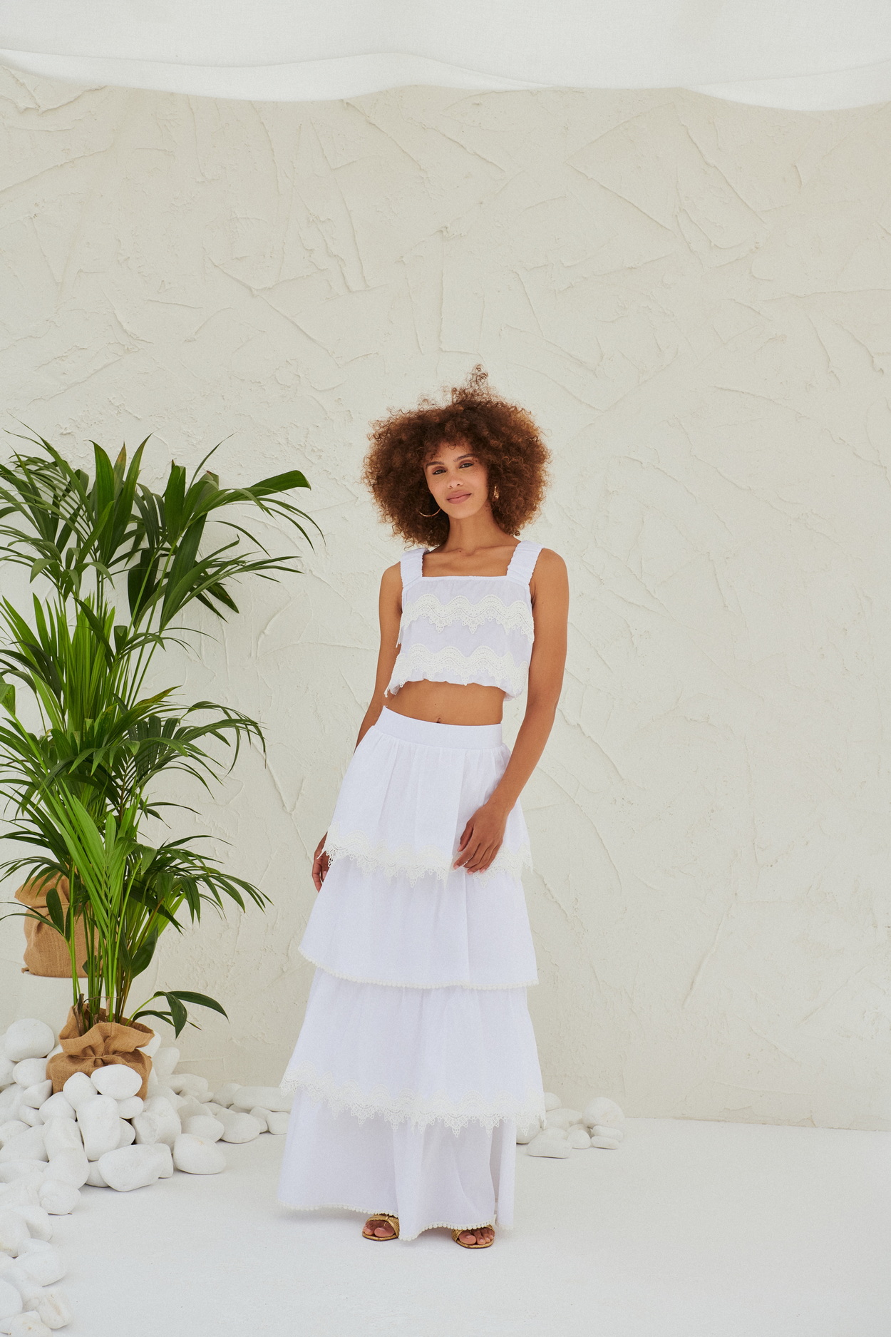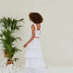 Maxi φούστα με βολάν και κλείσιμο στο πίσω μέρος με φερμουάρ. Εξαιρετικό κομμάτι που θα σας χαρίσει στυλ και ελευθερία κινήσεων.