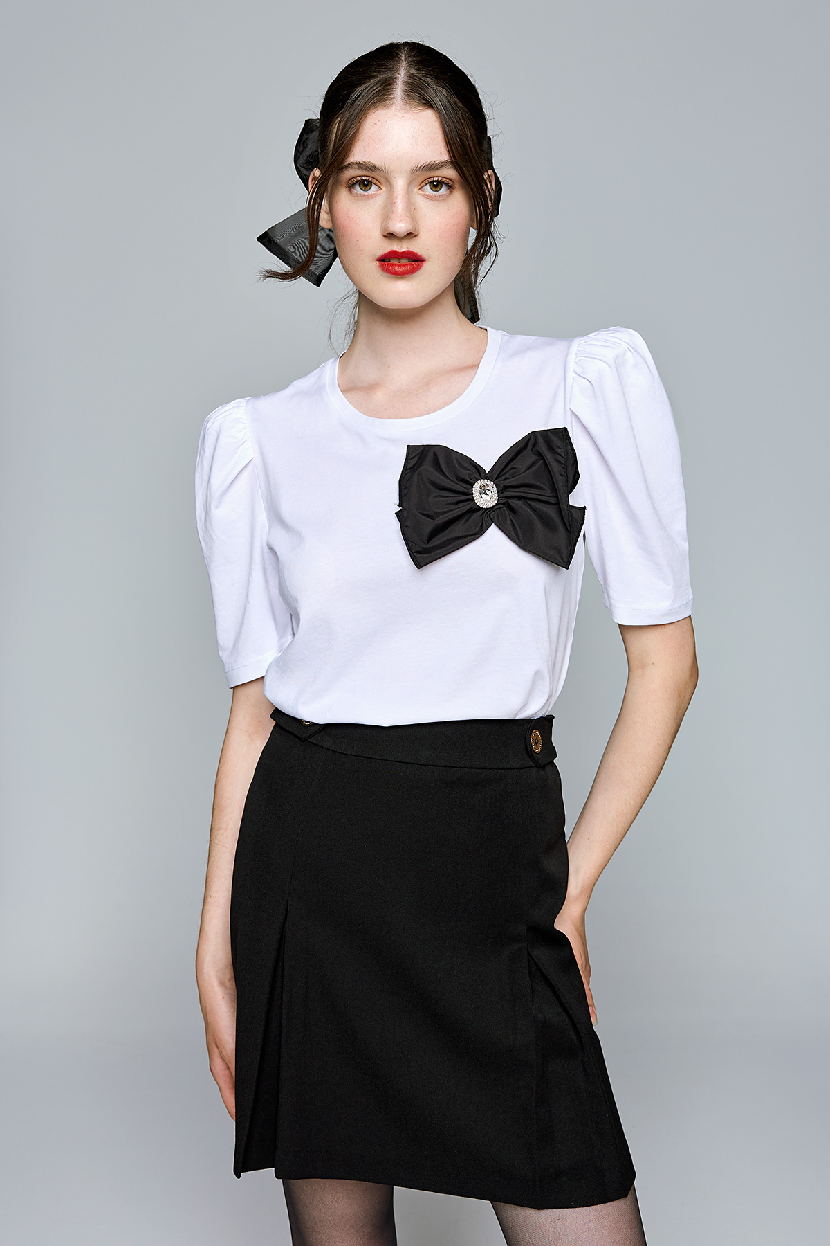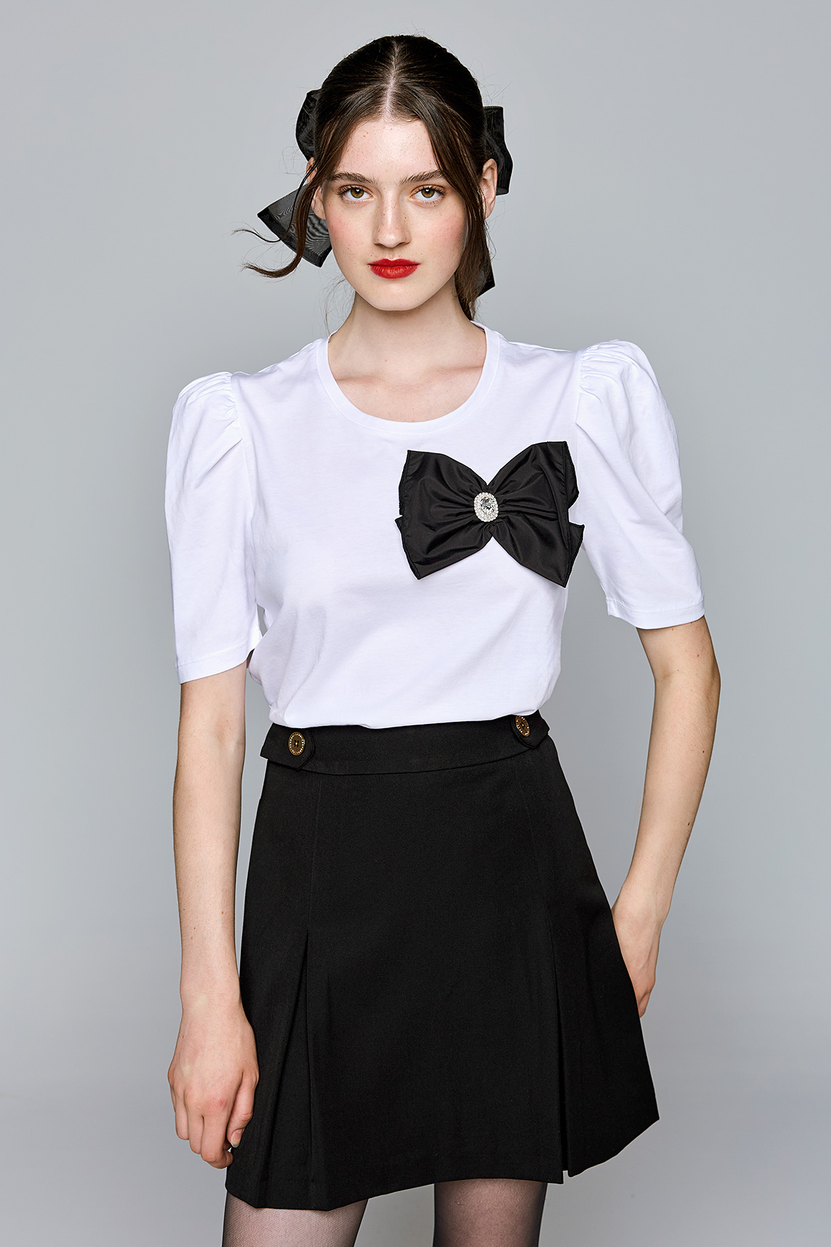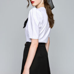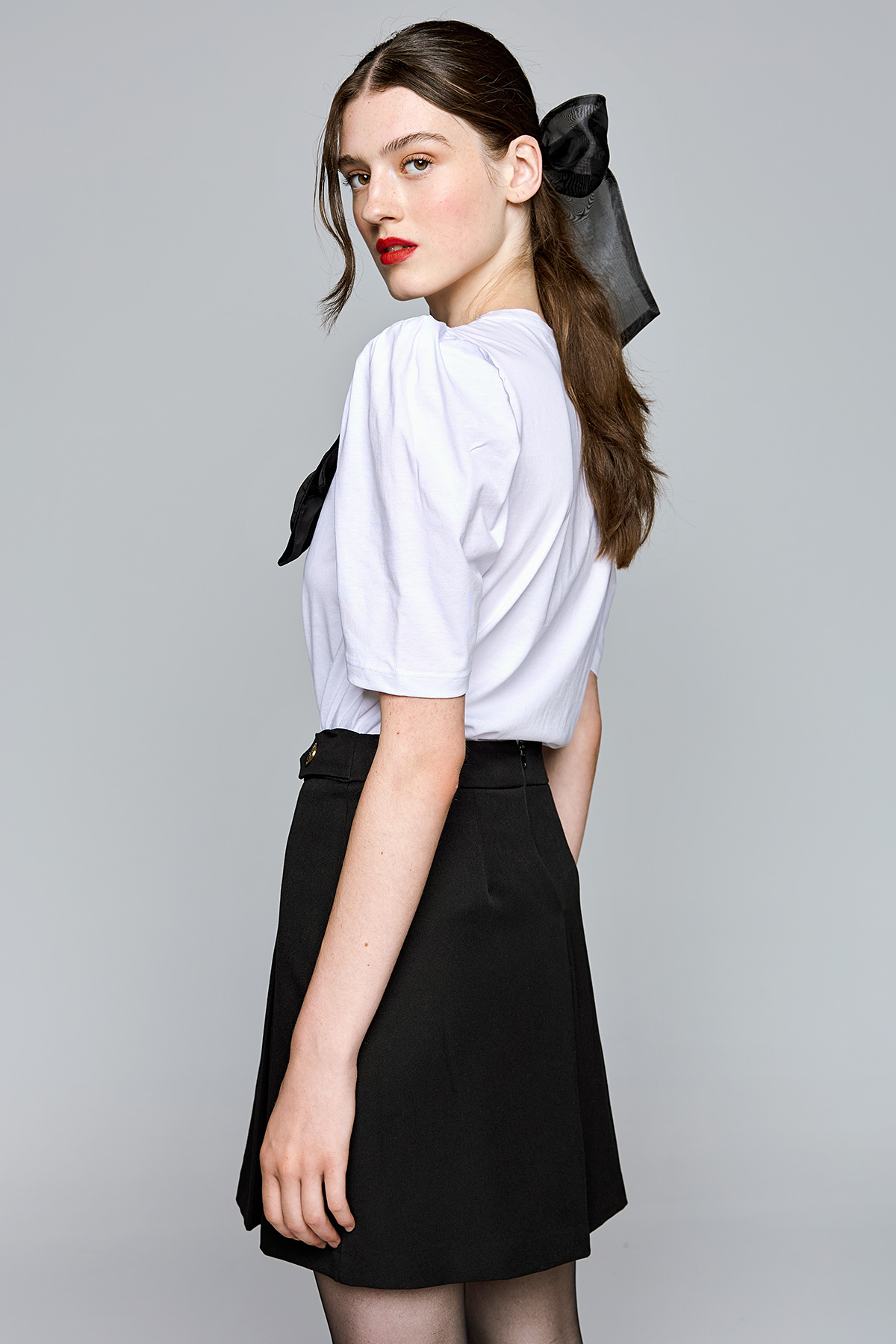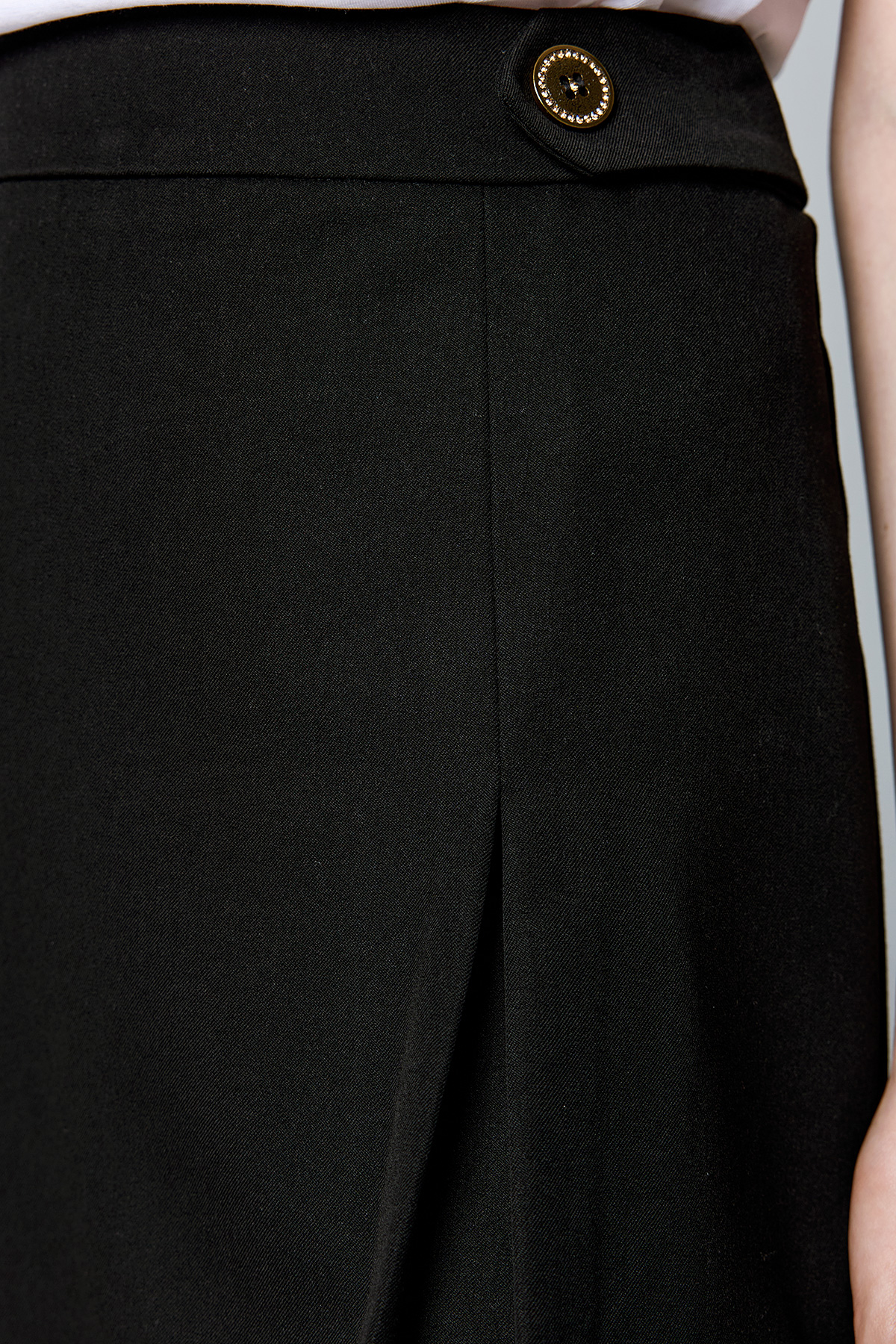 Ψηλόμεση φούστα Πιέτες στο πλάι Διακοσμητικά κουμπιά στην μέση Κλείνει πίσω με φερμουάρ 78%POLYESTER-18%VISCOSE-4%ELASTANE