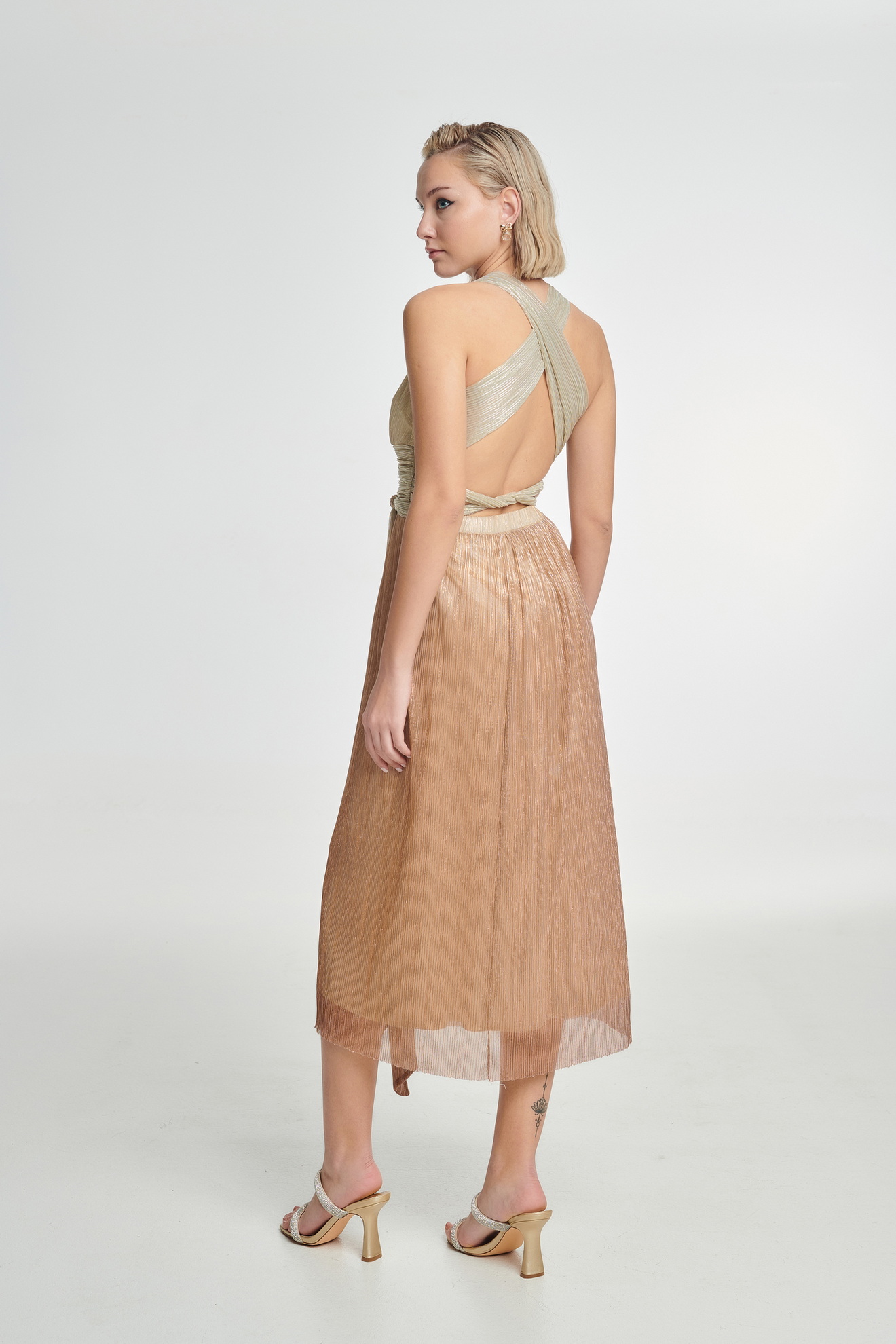 Midi εξώπλατο φόρεμα, με λάστιχο στα μανίκια και εσωτερική φόδρα. Εξαιρετική επιλογή για μία κομψή και επίσημη εμφάνιση, που κερδίζει σίγουρα τις εντυπώσεις!