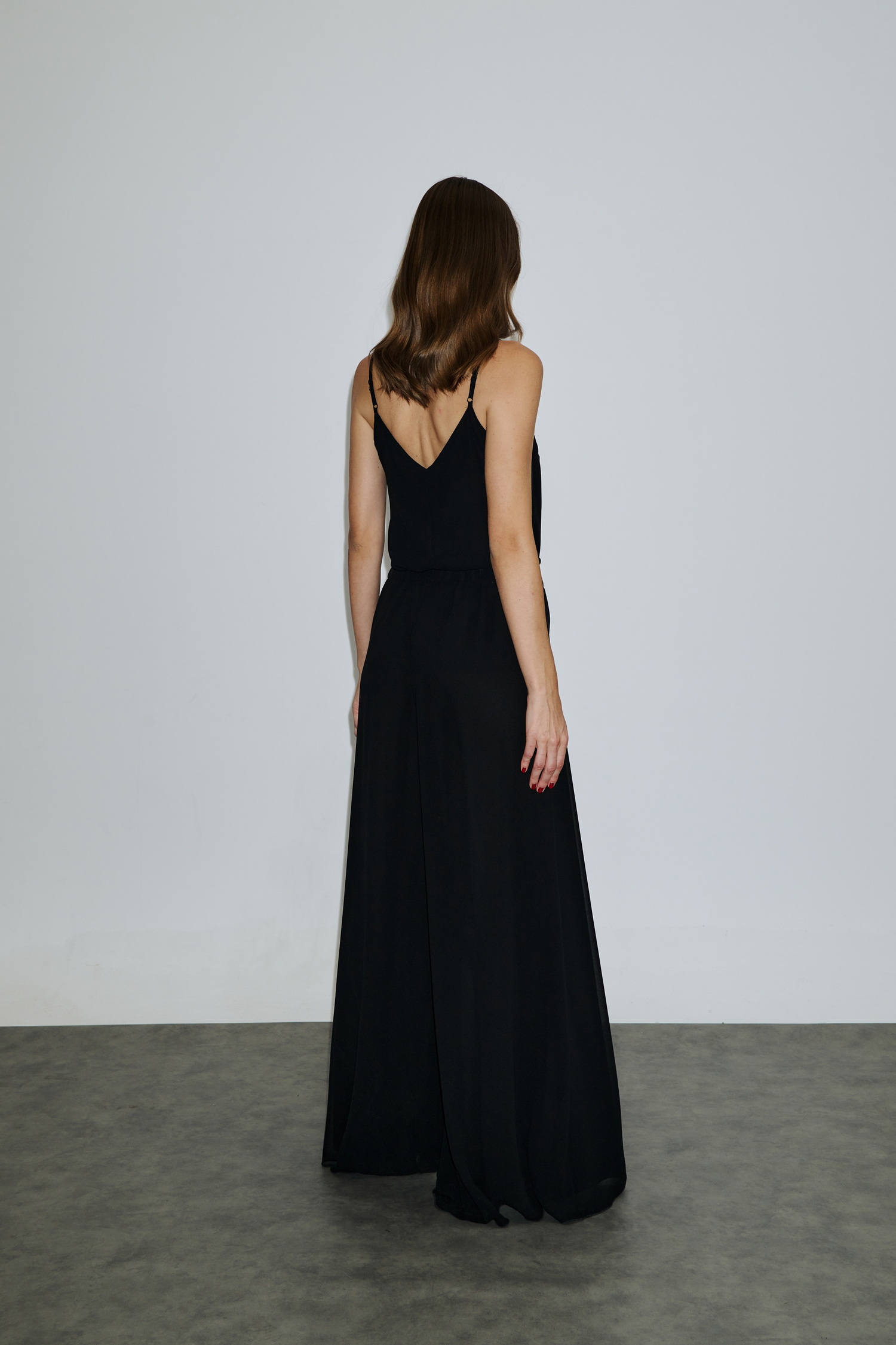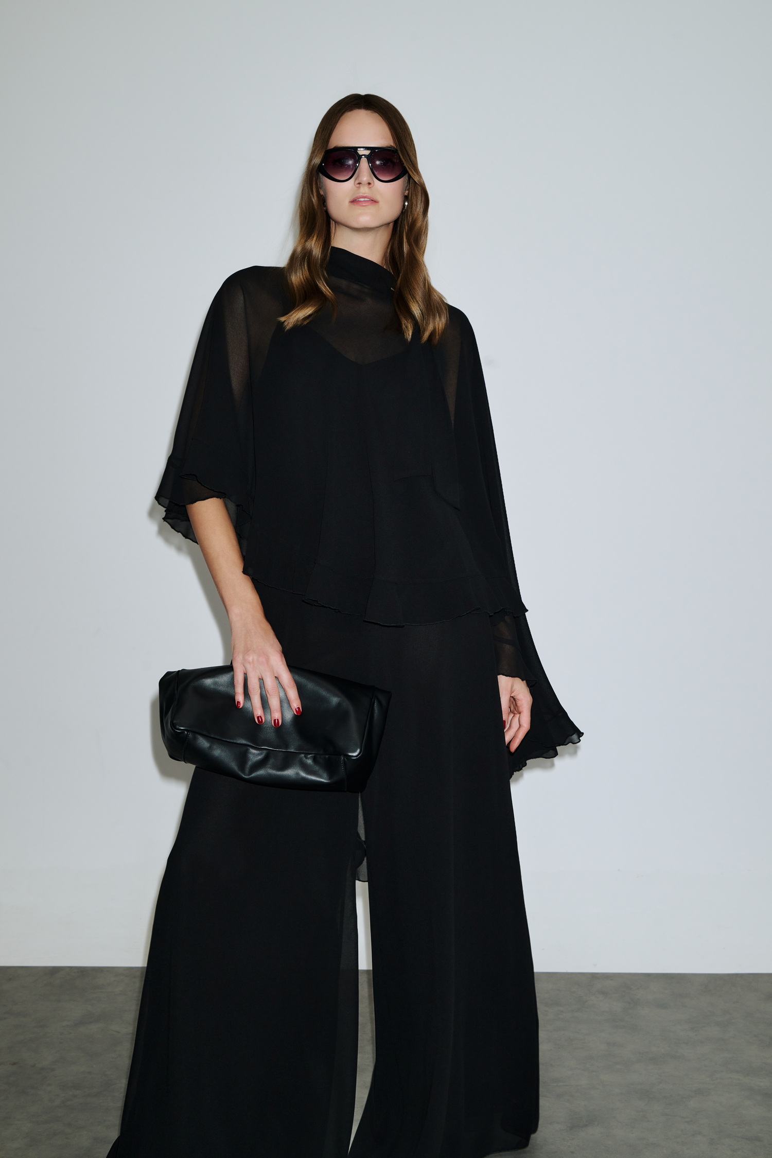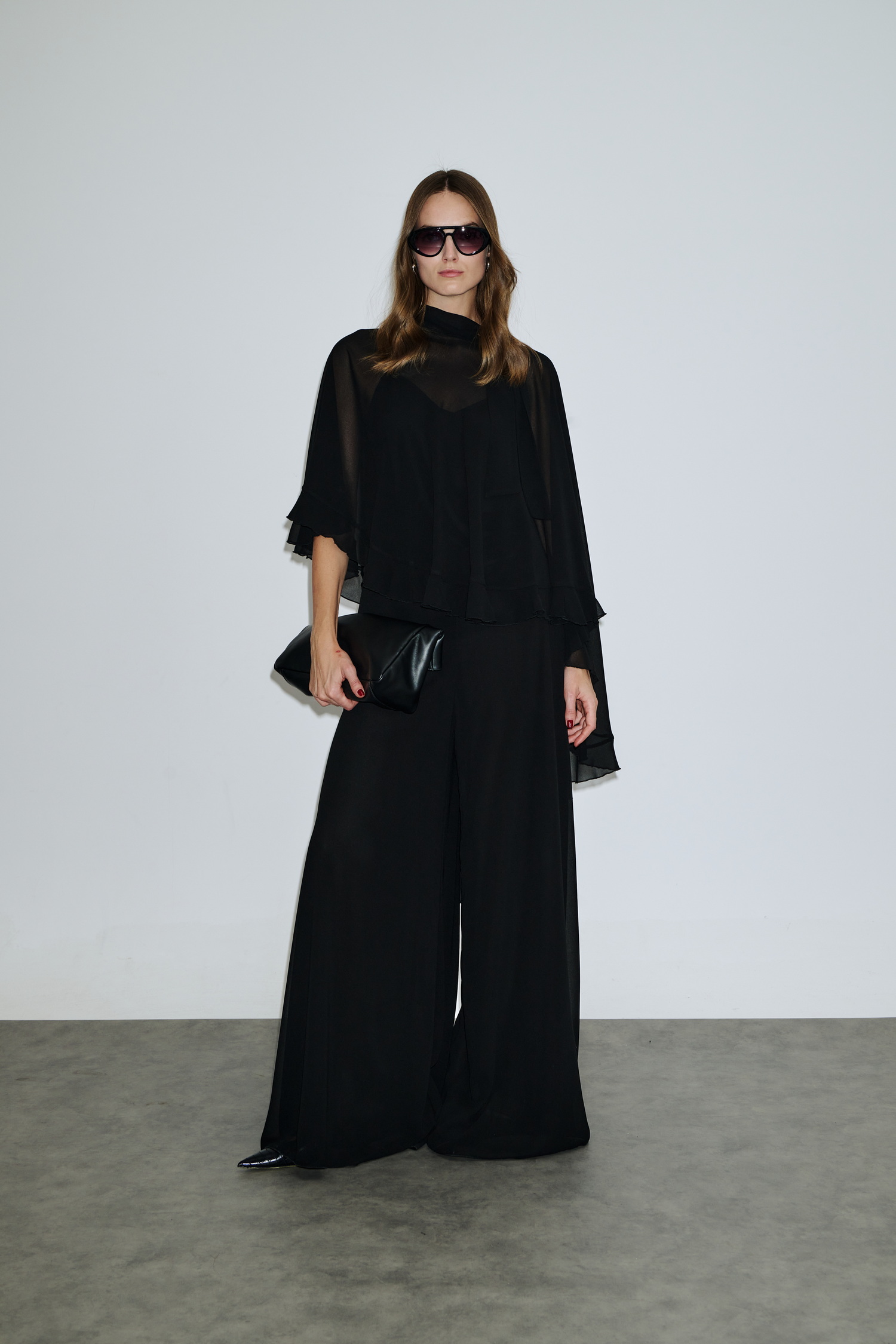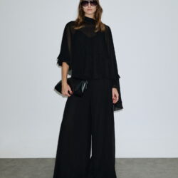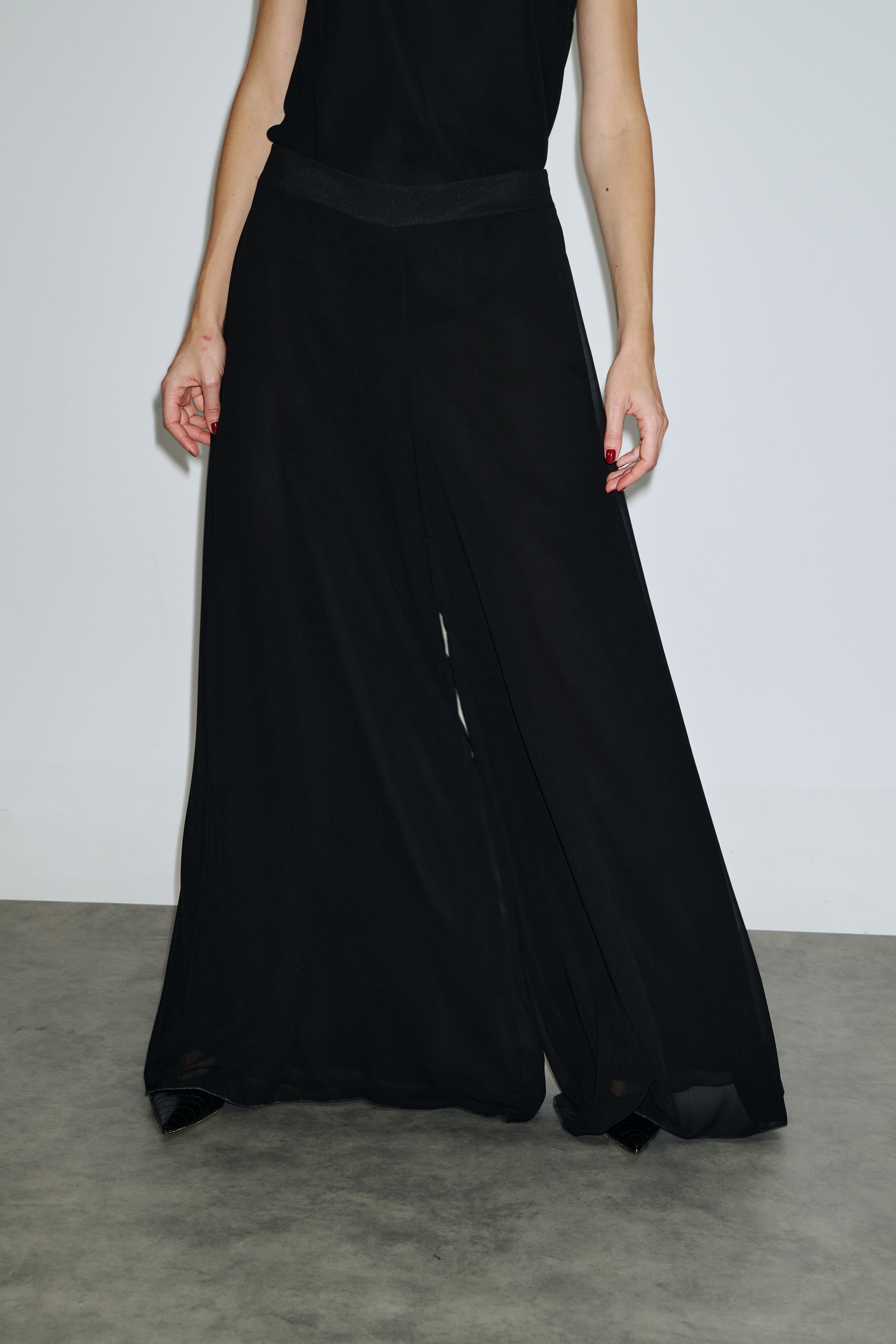 Γυναικεία παντελόνα από ελαφρύ και αέρινο ύφασμα με φαρδιά γραμμή.Το σχέδιο έχει ελαστική μέση, προσφέροντας απόλυτη άνεση και ευελιξία στις κινήσεις, ιδανικό για πρωινές και βραδινές εμφανίσεις με chic minimal αισθητική.