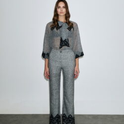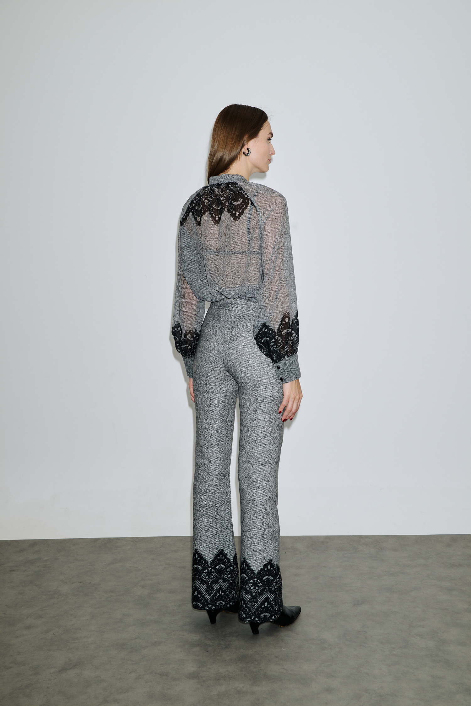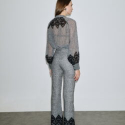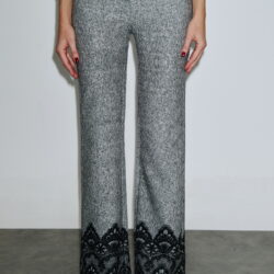 Ψηλόμεσο παντελόνι σε γκρι μελανζέ απόχρωση με διακοσμητική μαύρη δαντέλα στο τελείωμα για elegant αποτέλεσμα.
