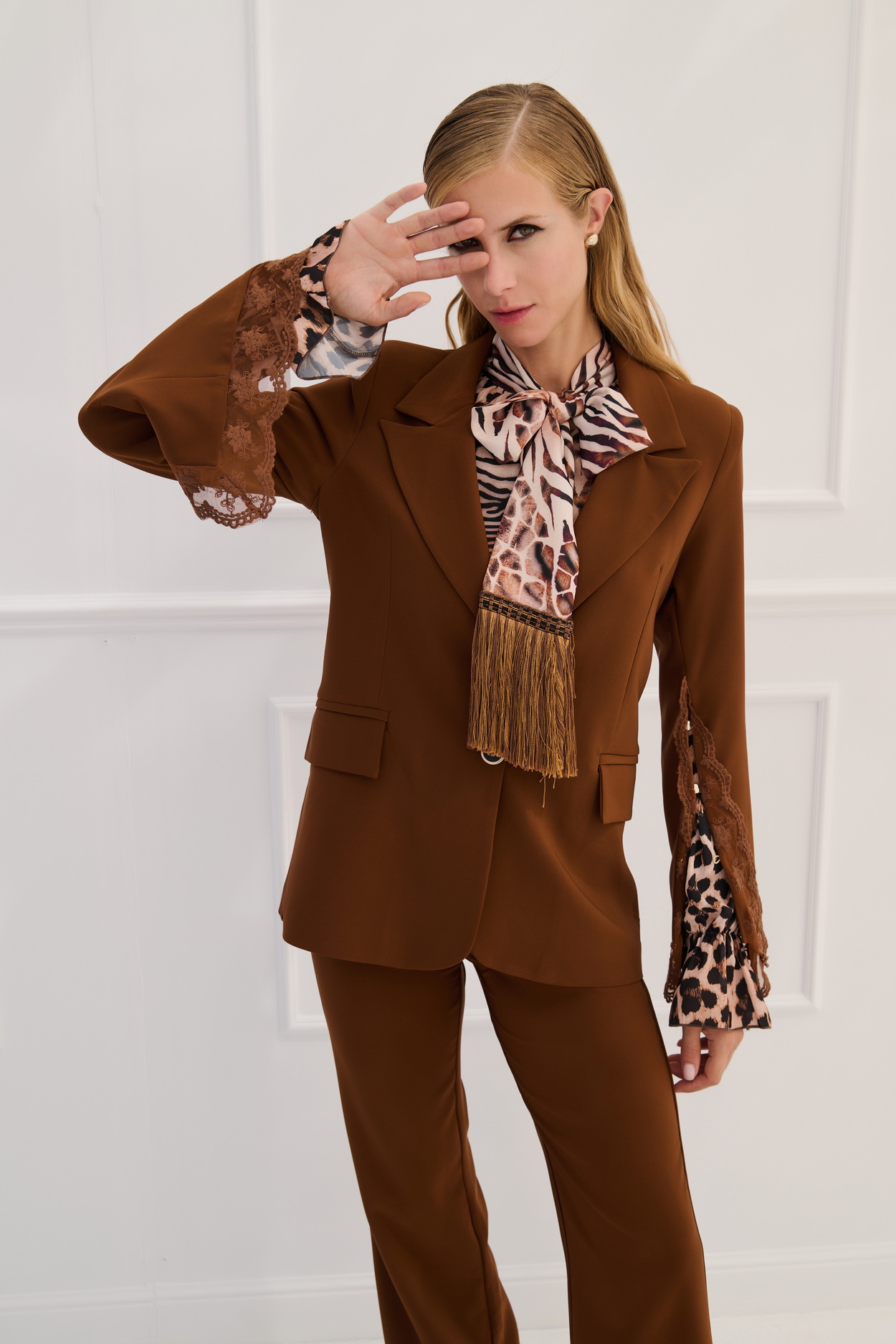 Σακάκι με σκίσιμο στα μανίκια που κλείνει με κουμπιά στο μπροστινό μέρος. Μοναδική προσθήκη σε ένα κομψό outfit που μαγνητίζει τα βλέμματα όπου κι αν βρίσκεστε!