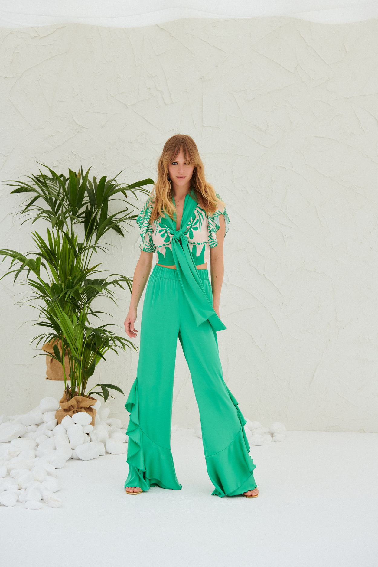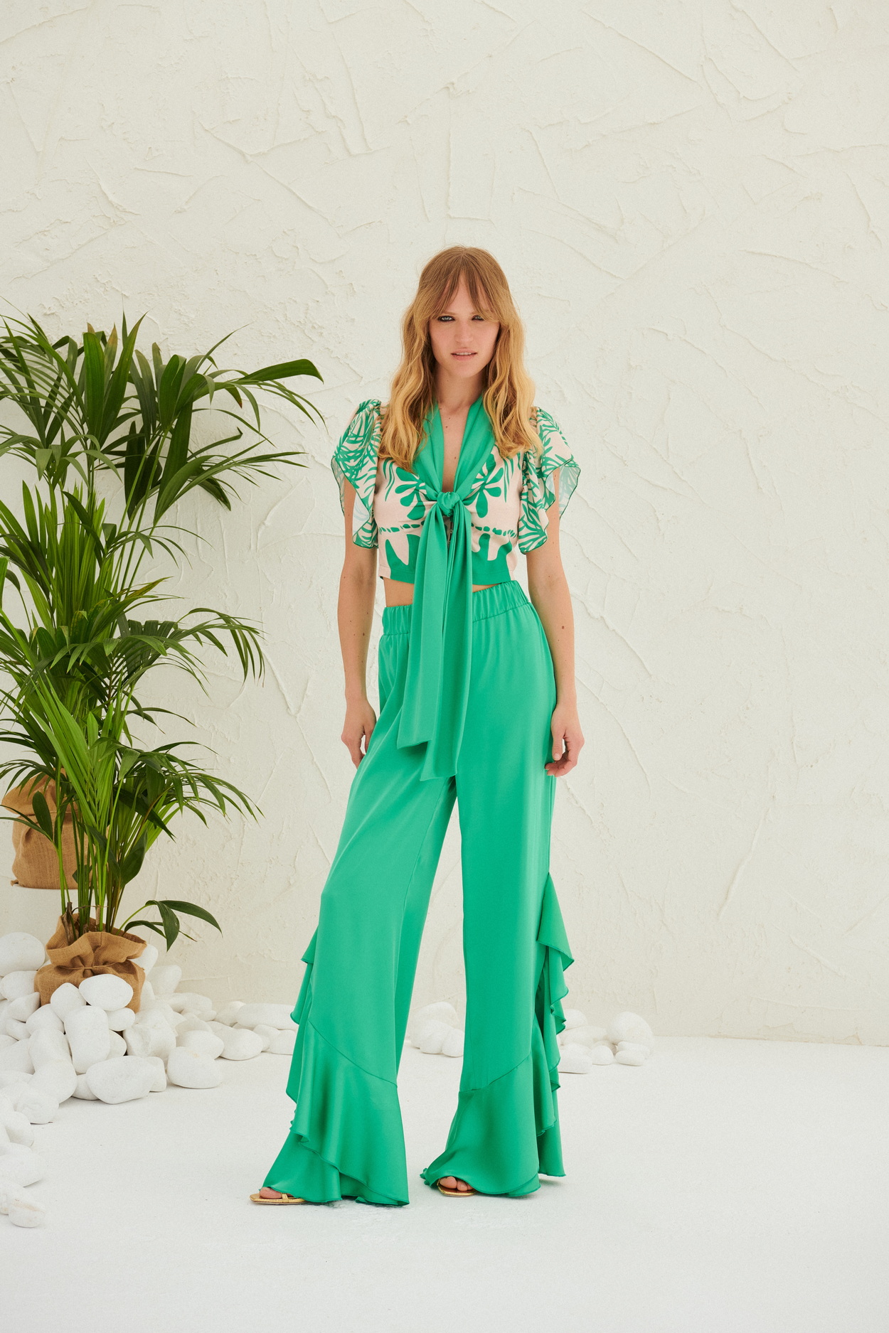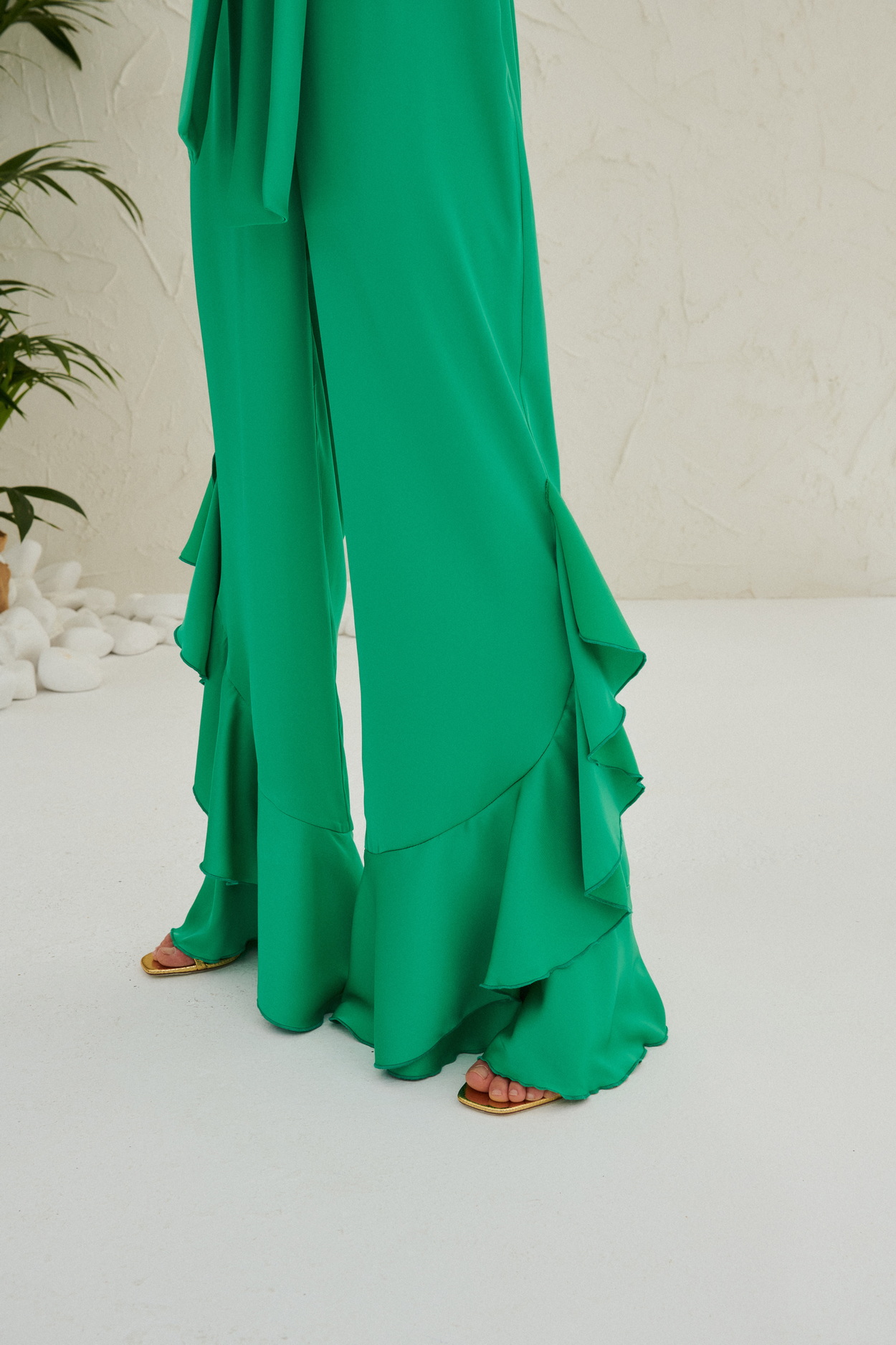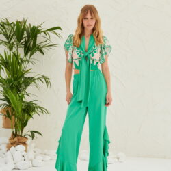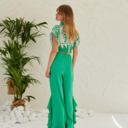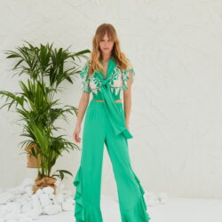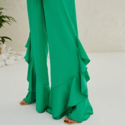 Ψηλόμεση, σατέν παντελόνα με λάστιχο στη μέση και βολάν στο τελείωμα. Ιδιαίτερη επιλογή για μοναδικές και πιο επίσημες εμφανίσεις!