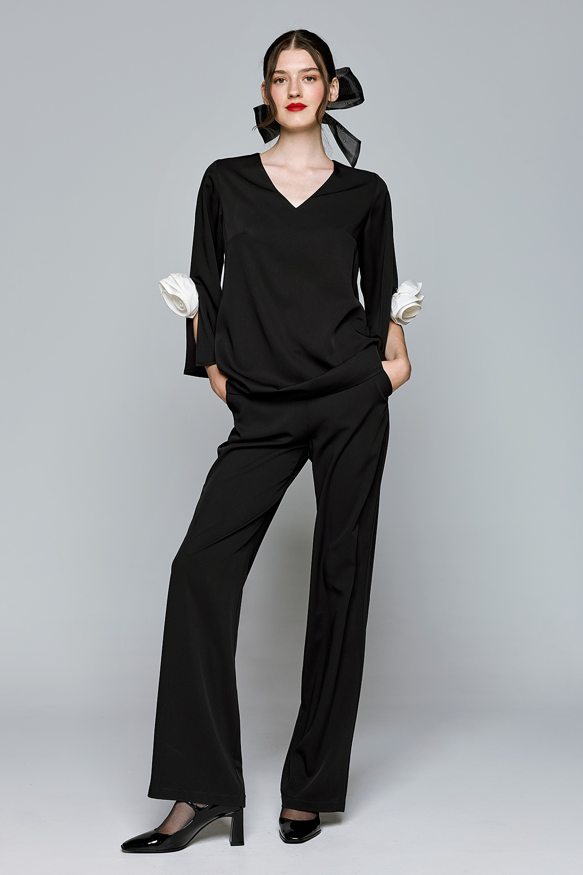 Αποσπώμενα λουλούδια Παντελόνι με λάστιχο στην μέση Τσέπες στο πλάι Μανίκια με Σκίσιμο 96%POLYESTER-4%ELASTANE