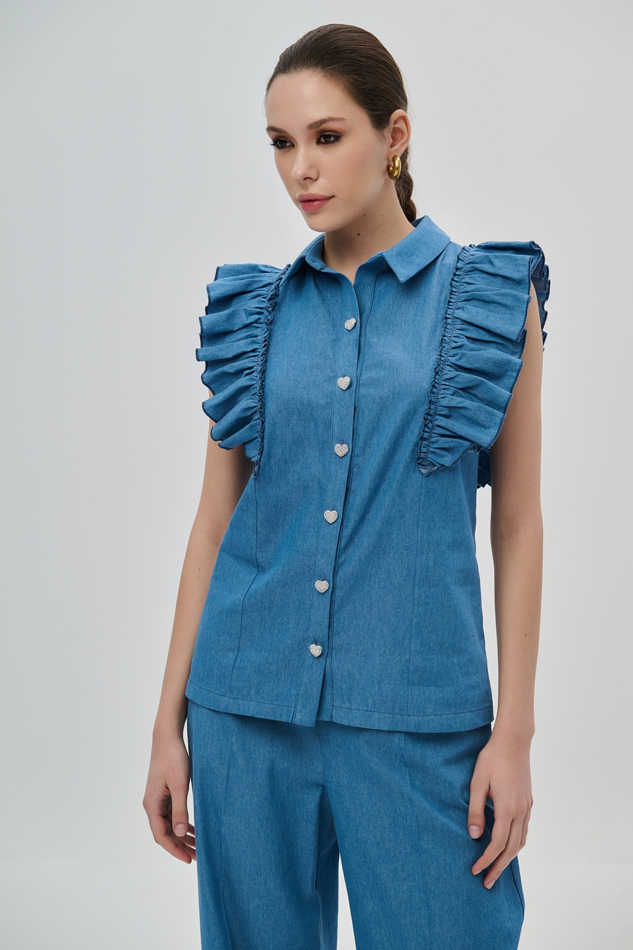 Dejavu πουκάμισο τύπου denim με βολάν