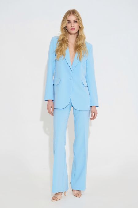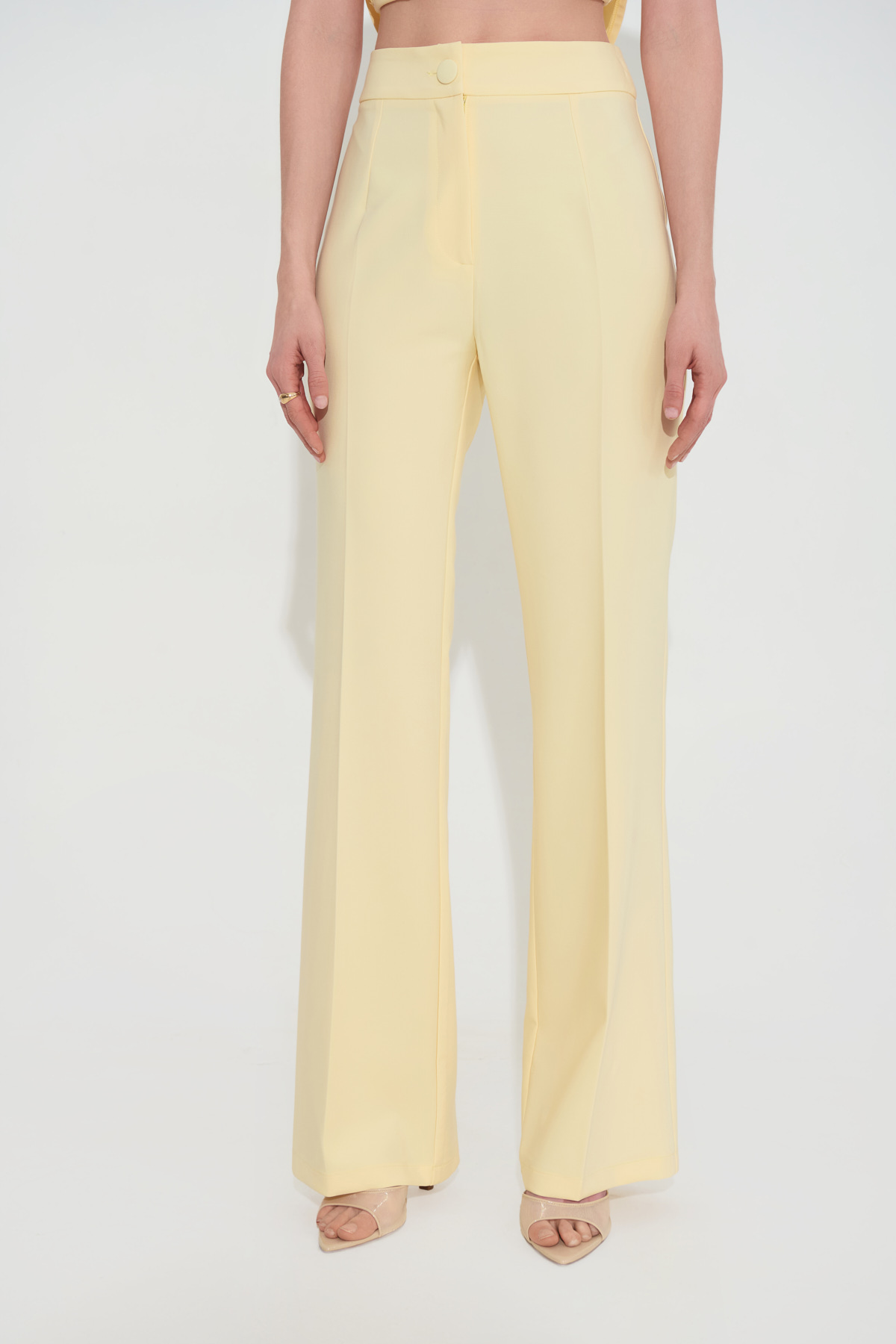 Γυναικείο ψηλόμεσο παντελόνι με κουμπί και wide leg σιλουέτα που αγκαλιάζει το σώμα.