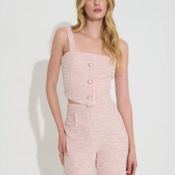 Ψηλόμεσο γυναικείο σορτς με boucle tweed ύφασμα.
