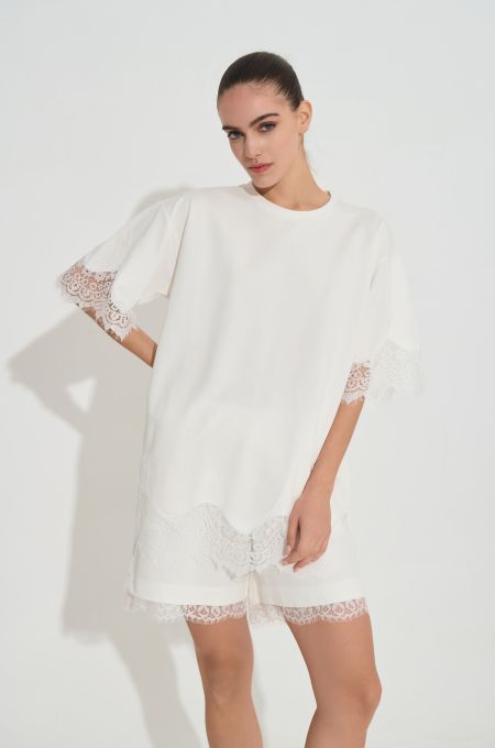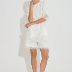 Ρομαντικό λευκό σορτς με δαντέλα. Ιδανικό για καλοκαιρινές casual chic εμφανίσεις.
