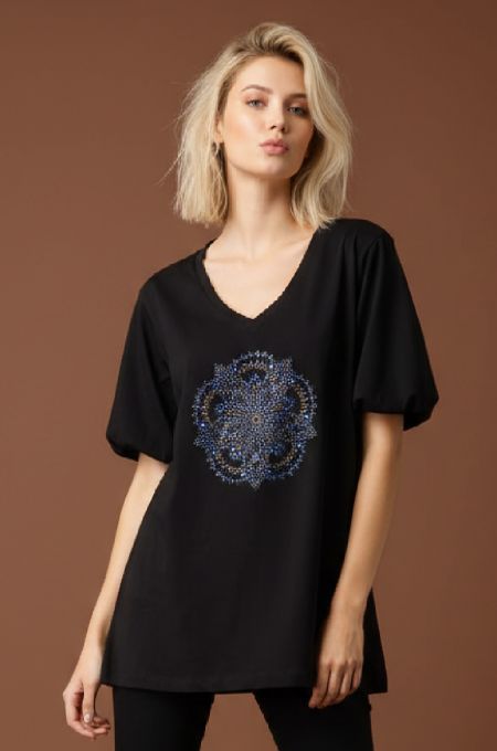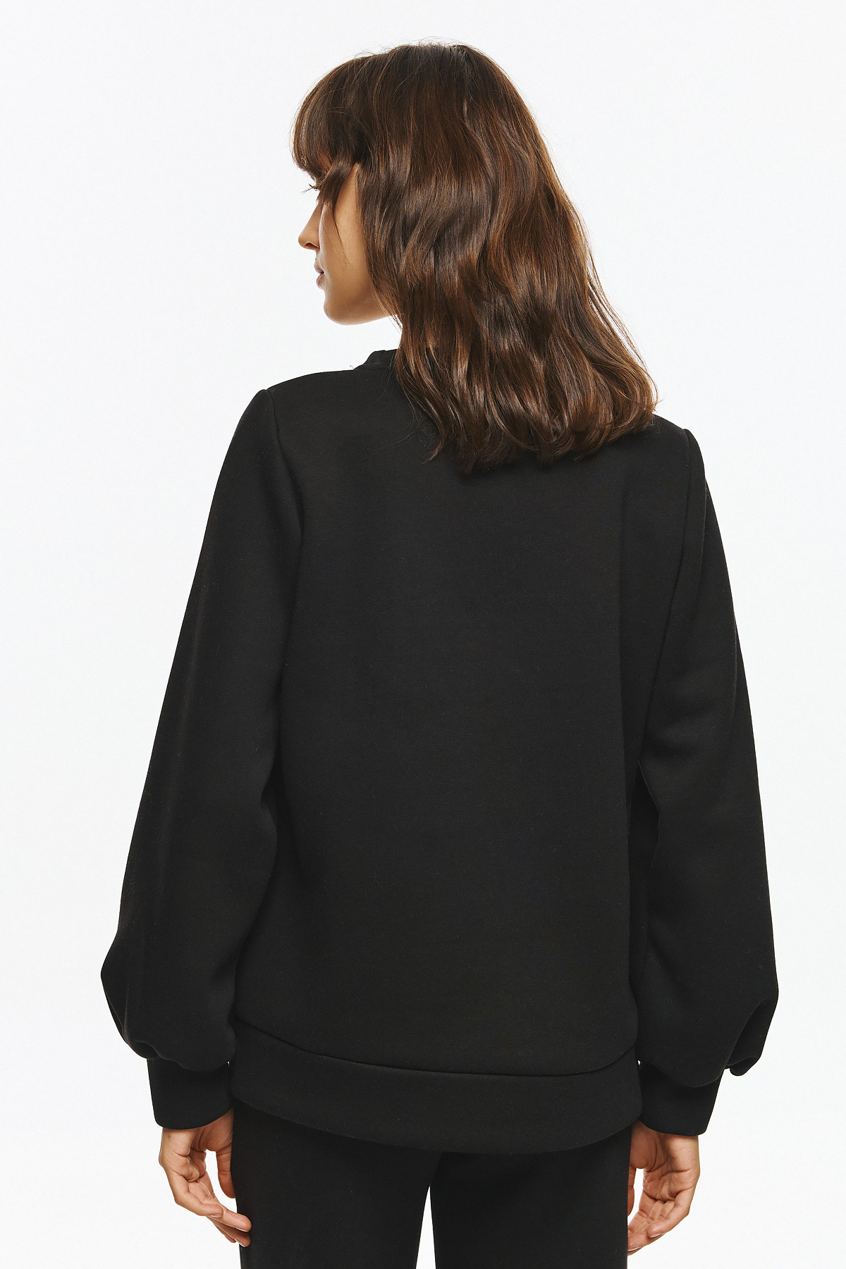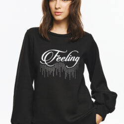 Φούτερ μπλούζα με balloon μανίκια και άνετη γραμμή. Το μπροστινό μέρος διαθέτει εντυπωσιακή κεντημένη λέξη “Feeling, πλαισιωμένη από διακοσμητικά στοιχεία με strass. Η συγκεκριμένη μπλούζα δίνει μοντέρνα, cool και διακριτικά glam διάθεση σε καθημερινά σύνολα.