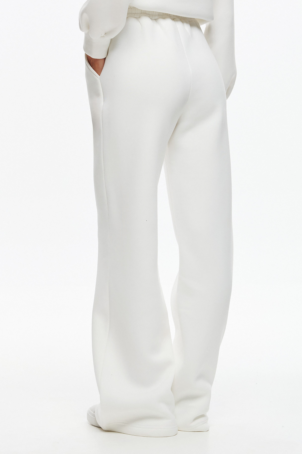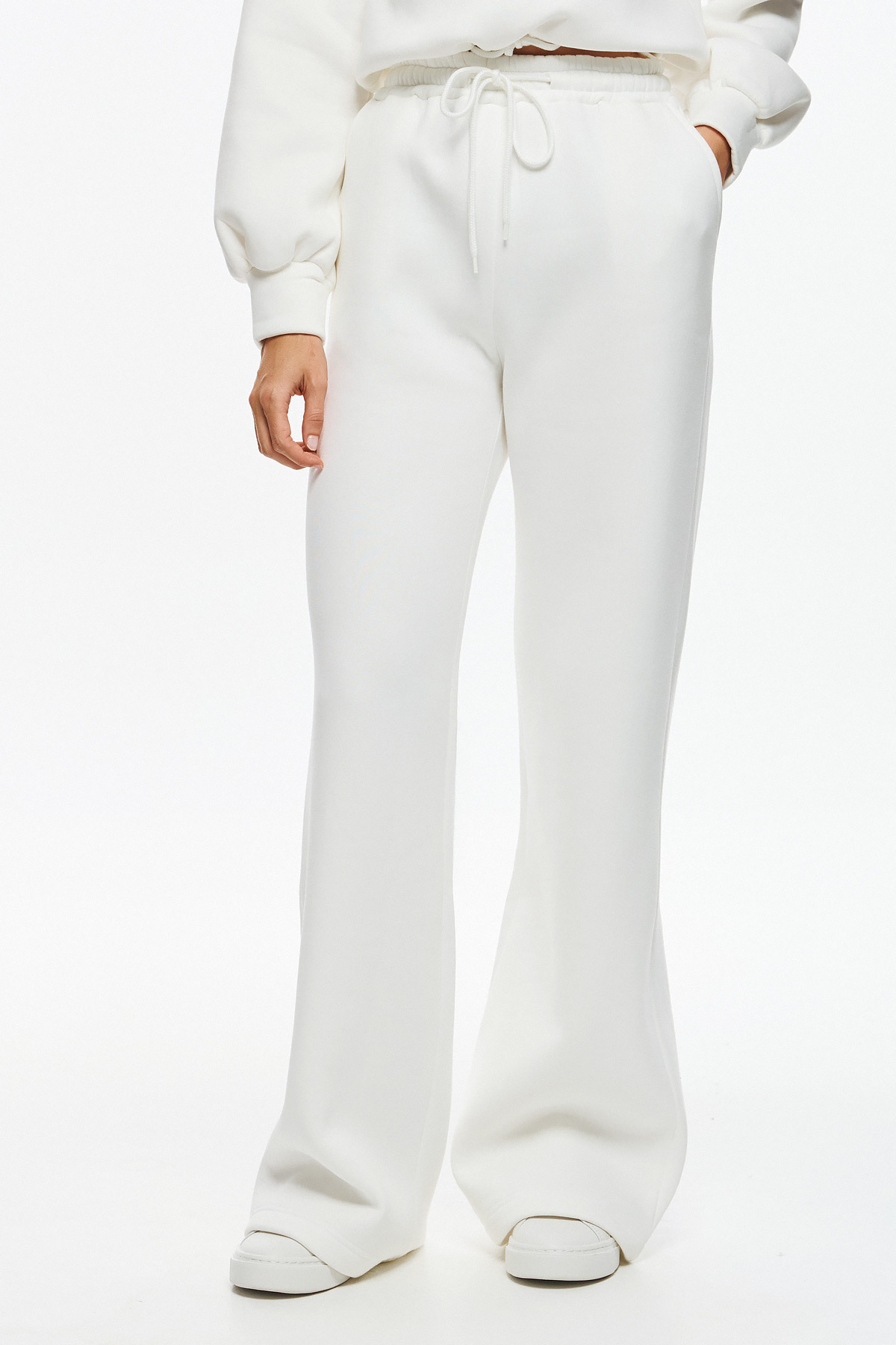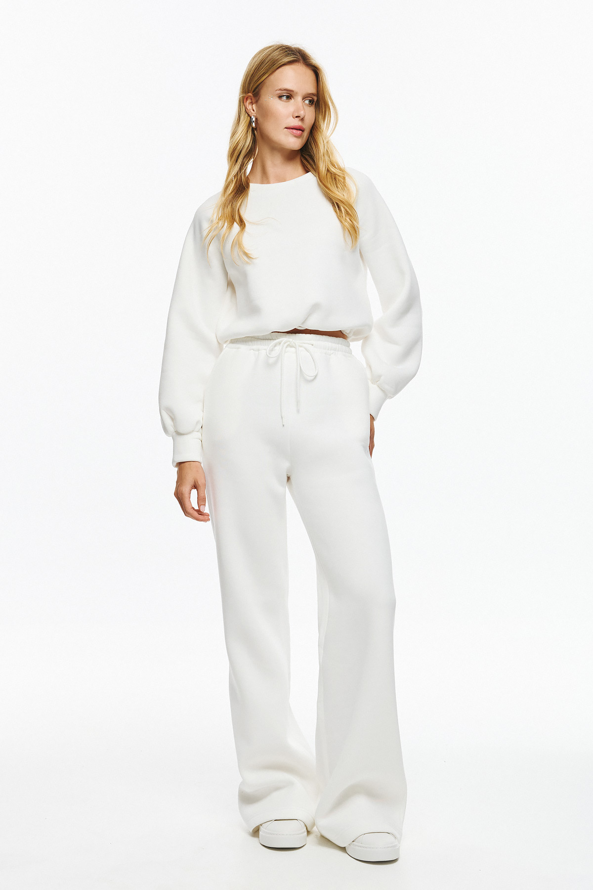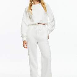 Παντελόνι φόρμας με ψηλή μέση, ελαστική ζώνη με κορδόνι και φαρδύ, ίσιο τελείωμα. Η άνετη γραμμή και το μαλακό βαμβακερό ύφασμα συνδυάζουν σπορ στυλ με cozy αίσθηση, ιδανικό για καθημερινές casual εμφανίσεις ή athleisure looks. Διαθέτει πρακτικές πλαϊνές τσέπες και καλύπτει ελαφρώς τα παπούτσια για επίκαιρο oversized αποτέλεσμα.