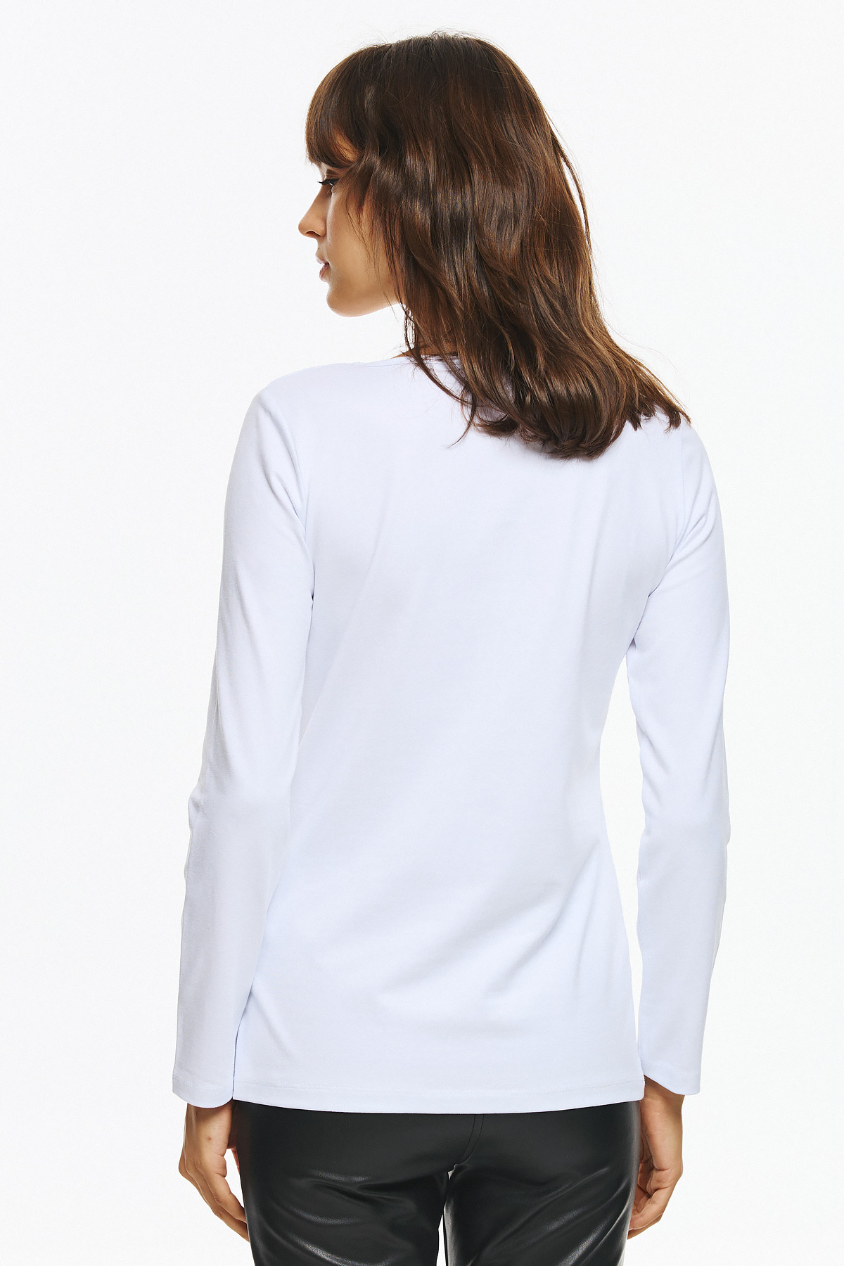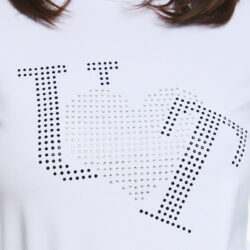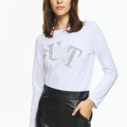 Μακρυμάνικη μπλούζα με διακριτικό διακοσμητικό print από στρας στο μπροστινό μέρος. Το σχέδιο σχηματίζει τη φράση “I love T” με διάτρητα μαύρα στρας και διαφανή στρας στην καρδιά, για μοντέρνο και παιχνιδιάρικο ύφος.